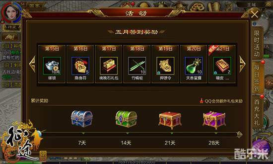 每天签到都会获得奖励,签到奖励也有魂魄石、秘银、硬皮等奖励,大家别忘了签到哦。