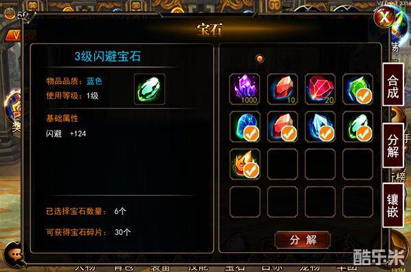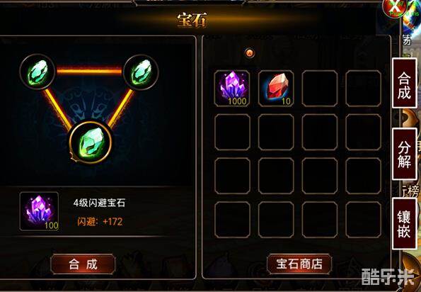 那如何提升宝石等级呢?可以通过2个同等级的宝石与指定数量的宝石碎片合成从而提升宝石等级,装备可以镶嵌的宝石数量由装备等级决定,装备等级越高可镶嵌的宝石数量越多。