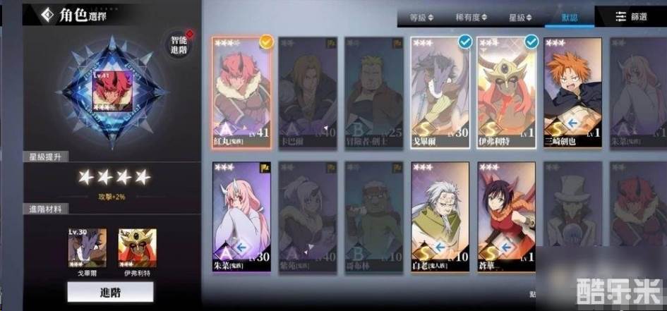 1、若想提高角色等级,则要事先收集素材为角色进行等级突破,突破过的角色除了等级上限会提高外,若是看过角色们的技能组,会发现每只角色都会有一项技能需要透过突破来进行强化,而且这类技能通常在经过三次左右的强化后,就能够明显地感受到质变,因此游戏初期的「等级」与「突破素材」是重中之重。
