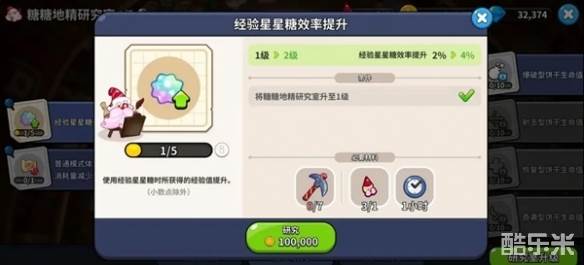 2、星星糖效率增加的研究升级后,给饼干使用星星糖获得的经验值都会永久性增长。