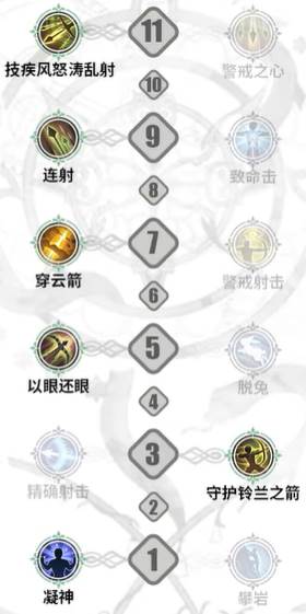 7阶(左):穿云箭(9阶会把普攻的曲射换掉,所以需要补充一个曲射)