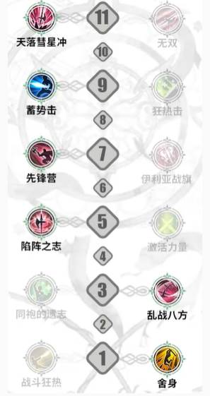11阶(左):天落彗星冲(超大范围AOE+降速控制,虽然无双的群体推人也很强但没有推人地形的时候确实比不上天落彗星冲)