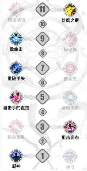 3阶(左+右):致命准星+狙击姿态(致命准星就是伦伽勒大招流的主输出,但是同时能吃到狙击姿态的加成所以必须都点)