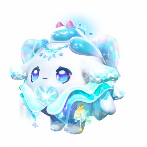 头顶的海天使闪烁着剔透的雪光,额前皎洁的冰花反射出纯澈的光彩,下垂的耳廓凝结着梦幻的雪晶,与瞳孔中雪原倒影一同诉说着伊芙的温柔纯善。她禹禹独行在广袤的风雪间,胸前的女神之心温暖闪烁,消散的法力洒落裙摆,幻化出唯美的极光色彩。“直到与你相遇,这里终于有了绚丽的色彩”,历经千百年的孤独,这一次她能否成功拯救雪原?