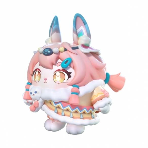 一双兔耳高高竖起,雪白绒球点缀耳边增添乖巧气质,粉色束发与复古额饰彰显着族群的独特风采。米黄色棉袄抵御着雪原的严寒,小雪人围脖将温暖牢牢锁住,让可爱的小兔子成为茫茫白雪中活泼蹦跳的一抹亮色。来自雪原部落的“北极兔卢米”天生能够聆听并理解所有生灵的语言,但这神奇的能力却令她被族人排斥,只能在领地边缘独自生活。不过,开朗的卢米对此毫不在意,总能对生活、对朋友展现出饱满的热情,“送个礼物给你,我的新朋友!”