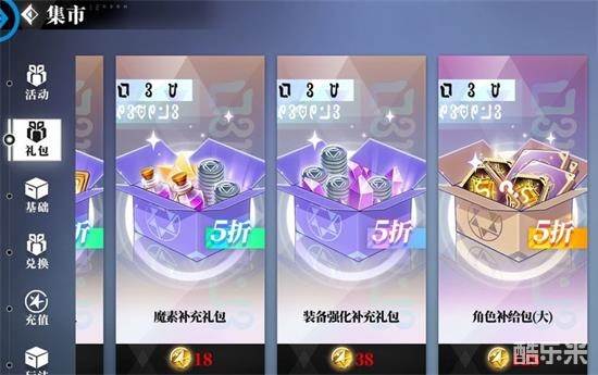 其次就是基础商店,这个基础商店我个人觉得,就记忆碎片+元素碎片属于是前期必买以外,其余的都可以不用考虑,矿石可以看心情,毕竟后期懒起来你基本不会刷这玩意,因为真的很麻烦。然后是集市,白嫖+月卡+微氪党就无脑换繁星的契约,不然ss出不来,这个不用考虑,安心蓝票yyds。