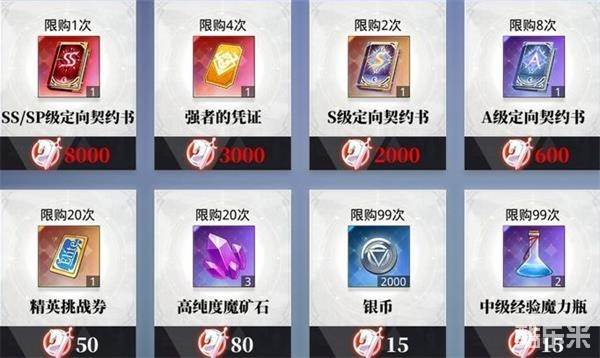 时空商店每个版本唯一ss兼sp角色获得活动(不算抽卡)+强者的凭证(最后突破的唯一产物),个人建议是攒到8000先把契约书换了,其他的如果实在的缺可以考虑一下,强者的凭证属于是中后期资源,前期可以不是很需要。