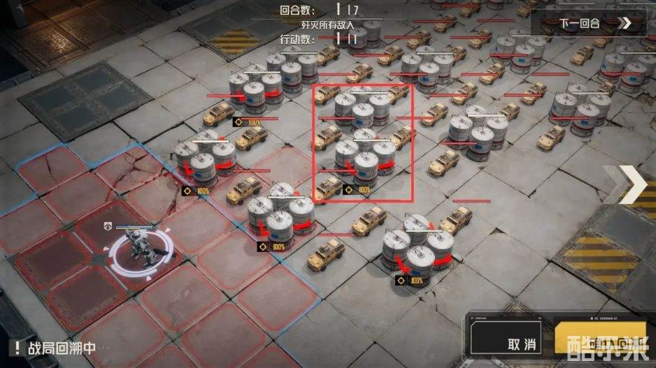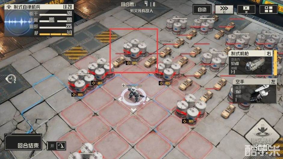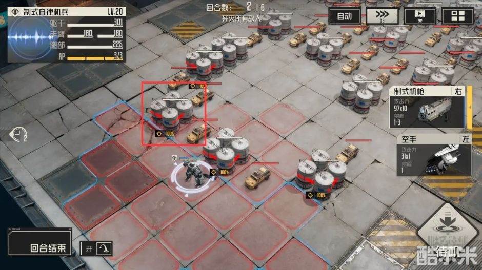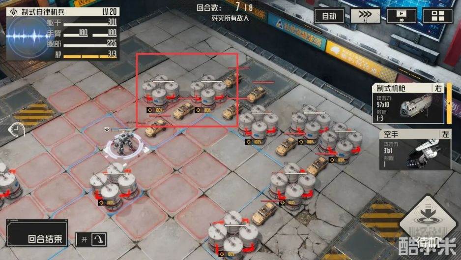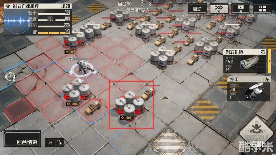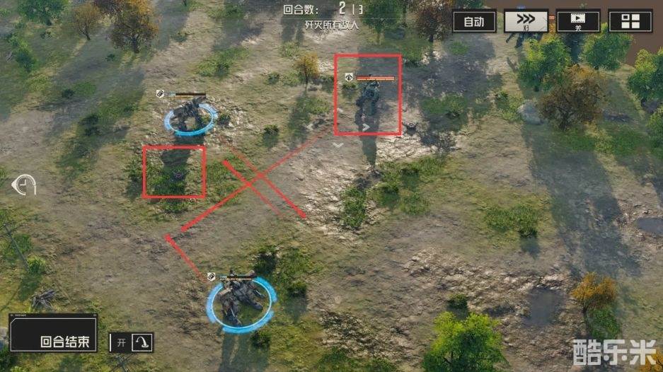 1.第一回合:按位置移动,打红框中的油罐。