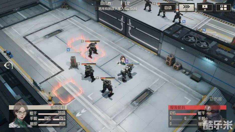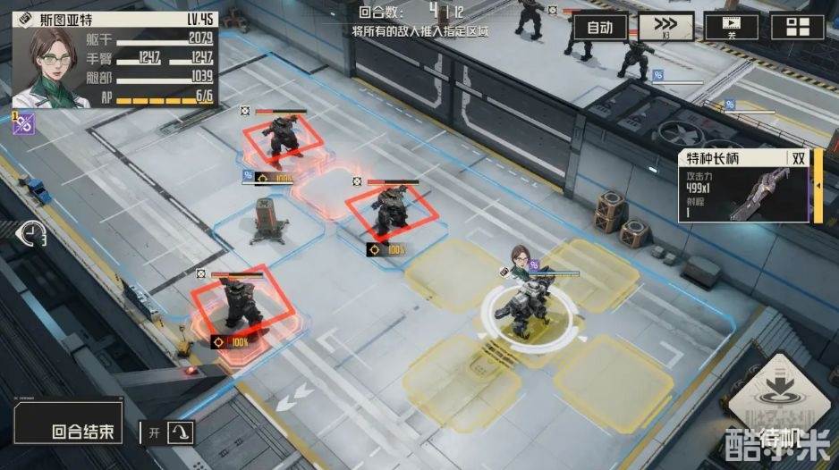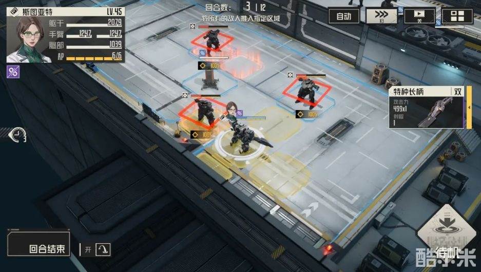1、第一回合:移动至相应位置,并使用击退技能