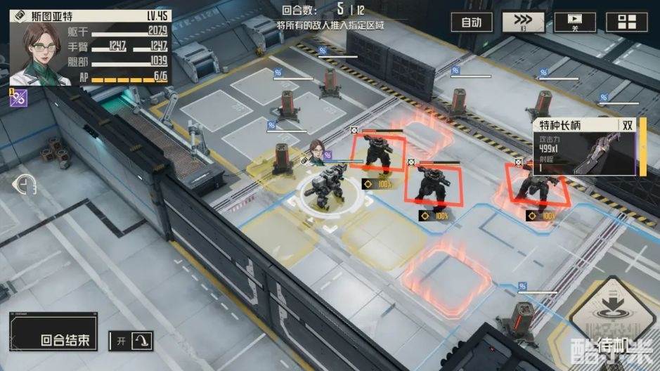 5、第五回合:移动至相应位置,并使用击退技能