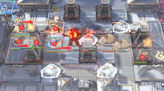 煌(向右)→ 打火石点亮煌背后的供暖器 → 流明(向右)→ 塞雷娅 → 伊芙利特(向右)→ 点亮最右边的供暖器提前解冻(防止最后一波压力过大)。