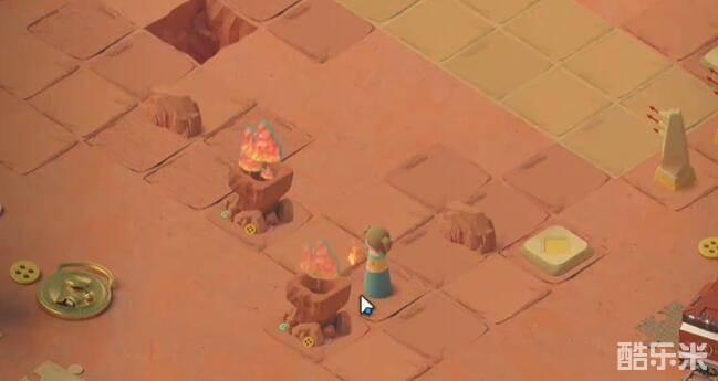 2、之后向上一格右转,击败右下角的石像,点燃篝火。