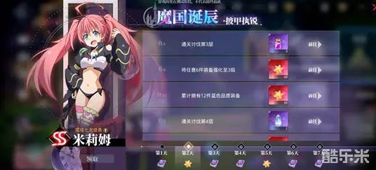 注册后每日完成任务可领取丰厚奖励,完成7日任务可获得SS级角色米莉姆