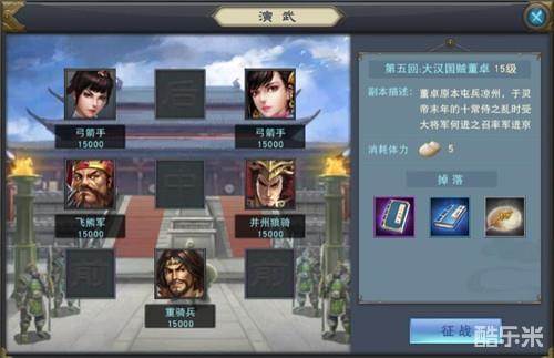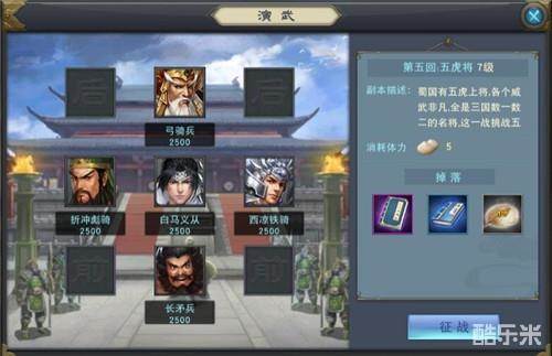 西蜀演武是新手阶段打的,此时兵等级低,武将比较差,所以通关该演武比较适合兵力压制。