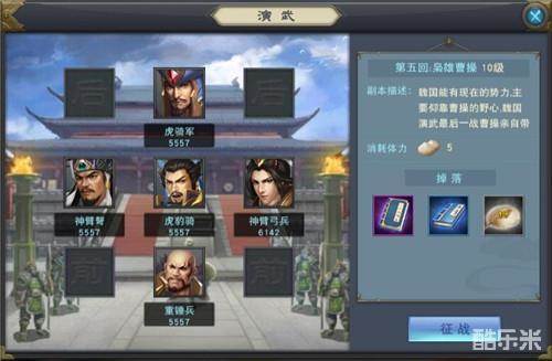 曹魏演武也是新手阶段可以挑战的,此时兵种等级开始有2级兵甚至3级兵,兵种数量上也比较可观,虽然武将质量还不够好,但是通过阵型调整以及依靠兵种优势,通关也是So easy的哦!