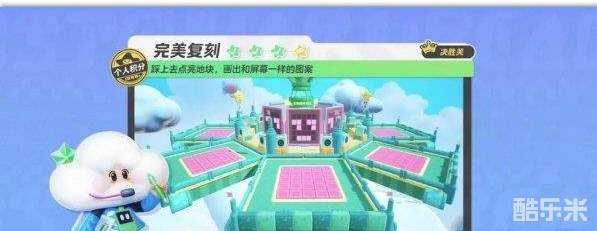 完美复刻讲究的就是看着屏幕踩图案,依葫芦画瓢,牢记所需要复刻的图案。依葫芦画瓢的关键点有四:一是推荐把屏幕画面调成俯视45°角,这样可以最大限度的同步观看图案屏幕和地板,然后遵守1亮2灭原则依葫芦画瓢。二是深知不犯错误的重要性,你比别人复刻每次少出错一次,优势就大一分。三是跑图时要学会充分利用各项跑跳技能及道具的施放。四是复刻时尽可能的寻找最优解来达成,如“一笔画”就不要分成两次完成。