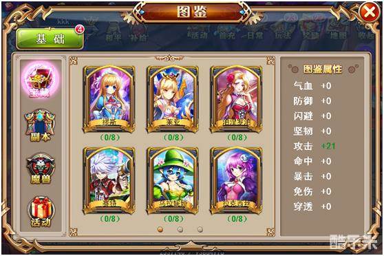 你可以通过藏宝图、精力副本、魔兽入侵、节日活动等形似获得不同种类的图鉴碎片。每个图鉴包含8块,每收集激活一块碎片,都可获得大量的永久属性加成