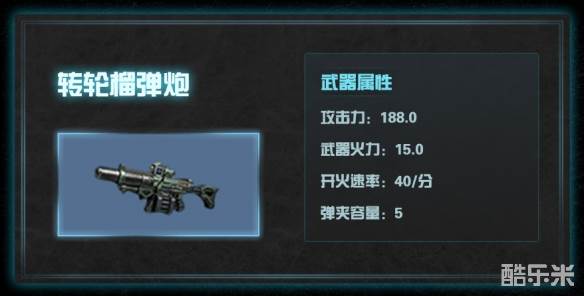 攻击力188.0 武器火力15.0 开火速率40/分 弹夹容量5