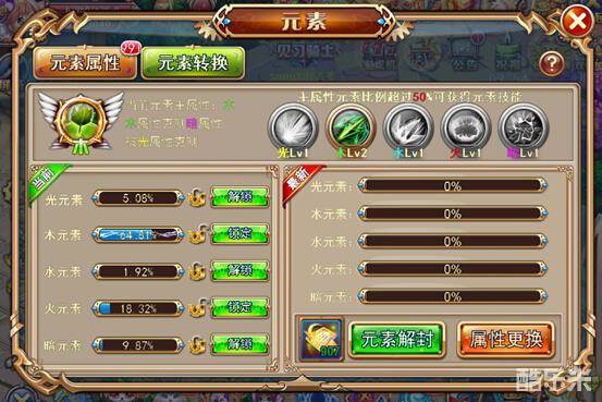 2)更换主属性时,锁定低比例的元素后,更容易出现高比例元素,锁定元素需要消耗元素属性锁,可在商城购买;