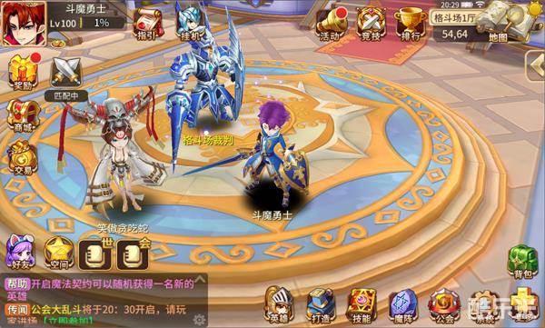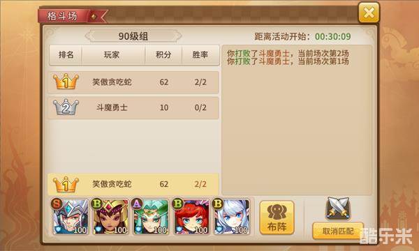 玩家21:00即可进场准备,准备期间还有经验和银币拿,21:30正式开始活动,系统自动为你匹配等级相近的玩家,双方都派出5个英雄上阵,进行单挑。和其他PK活动不同,在格斗场里,你没有了不怕神一般的对手,就怕猪一般的队友的担忧,也没有了被等级高的玩家追着满场跑的窘境。