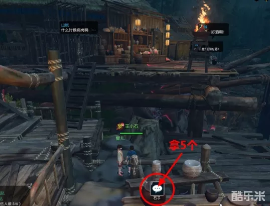 2.进入逃离盗贼阶段。出门在袋子上面有石头,需要拿5个。
