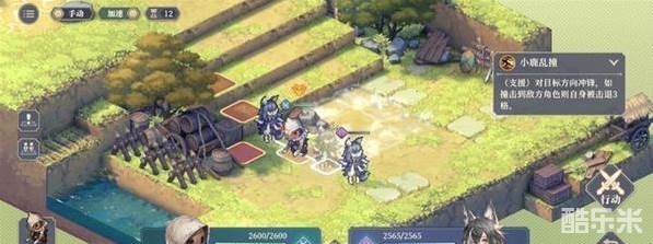 (3)茉茉移动到科尔背后对其使用技能[小鹿乱撞],茉茉被击退3格,相当于前进了5格。