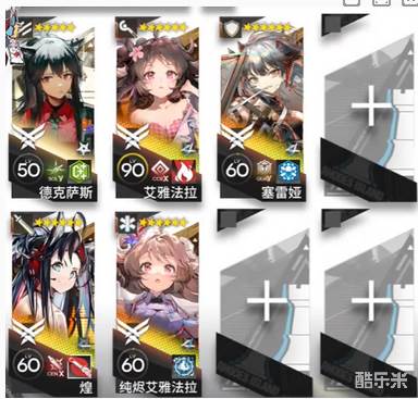 如图所示,部署德克萨斯 → 艾雅法拉 → 纯烬艾雅法拉 → 煌,全员向右。