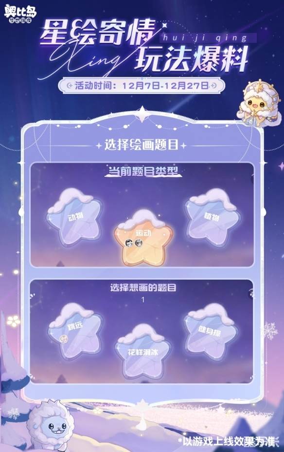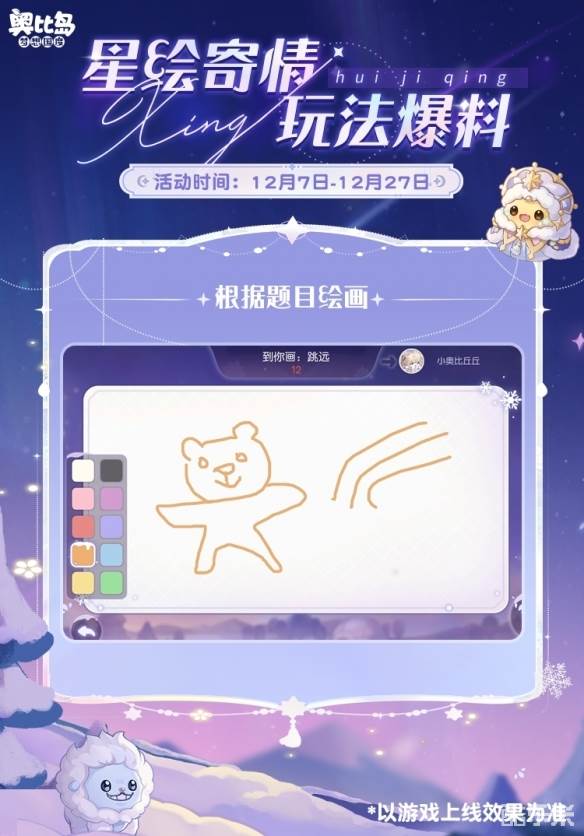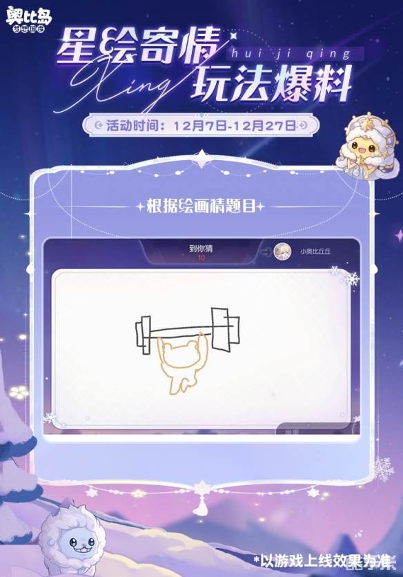 前面的爆料中不少小奥比猜到本次将更新“你画我猜”玩法,没错~全新多人游戏「星绘寄情」在12月7日上线!