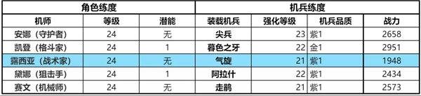 2-1至2-4,除了米赫玛的险恶之外,其他所有任务完成时的机师以及机兵练度如下: