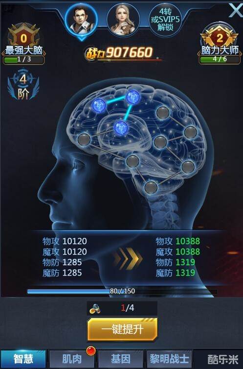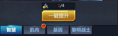 潜能分为“智慧”“肌肉”“基因”“黎明战士”四类。其中前三类可以通过金币或者材料进行升级,提高潜能。而第四种“黎明战士”则需要通过完成相对应的任务开启,所以在此文先按下不表,以后单独出一篇攻略,专门来说。今天咱们先来说说“智慧”“肌肉”“基因”的作用与获取方法。