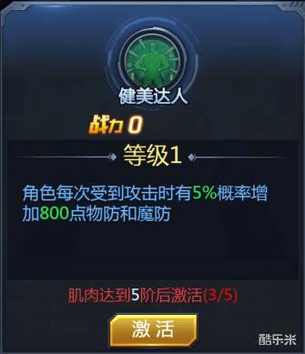 增强肌肉到一定程度可以升级成为“健美达人”,“健美达人”是一个能使角色每次受到攻击时有一定概率增强自身物理防御和魔法防御的BUFF称号。BUFF效果会随着“健美达人”的等级提高而提升。