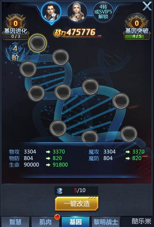 基因相比与前两类潜能作用更大,效果更好。因为基因能够增加玩家角色的物理攻击,魔法攻击,物理防御,魔法防御,生命值。五维属性的提高简直就是前两类的总和,异常强大。