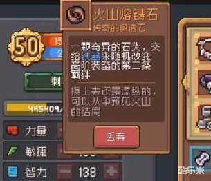 1、火山熔铸石可以通过开启商店的宝箱,有概率掉落。