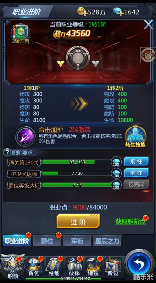 职业进阶需要做目标任务,再加上获取到足够的职业点数才能进阶,而且后续不是每次完成都能升一转,会出现0转1阶、0传2阶,1传1阶这样的升级方式;而且转生之后,最大提升战斗水平的,还是以穿戴更高级装备为主,同时也会开放一些新玩法、新系统以及转生技能效果等。