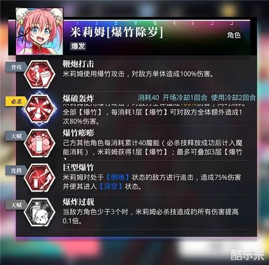 米莉姆开局丢核弹,如果清掉2个脆皮,那么新春米莉姆就触发敌人人少被动,大招伤害增加0.1倍,刚好把伤害拉满拉满。