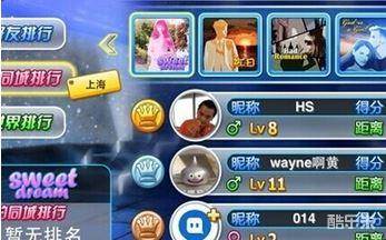 在《劲舞团》游戏中,有着各种各样的排行榜。当各位玩家老爷在一首歌曲下取得较高的评分时,相应的信息就会出现在排行榜之上。看一下自己在整个游戏中的排名如何?在好友中的排名又如何?如果这些都排不上,那么附近的人群中玩家老爷们总得为自己占个位置吧~为了“榜上有名”,同志们仍需努力。