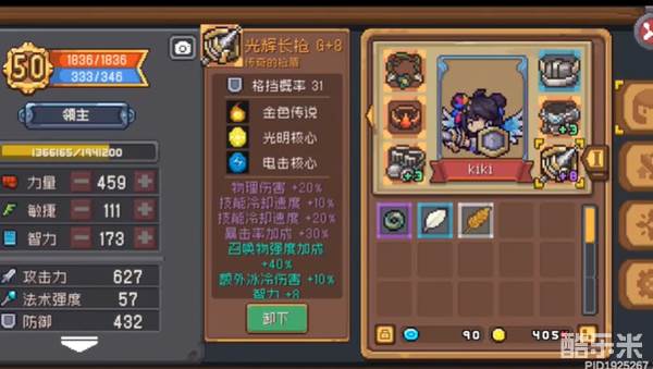 1、光辉长枪属于传奇几倍的武器,基础属性为31格挡概率,可以有概率格挡盖屋的攻击。