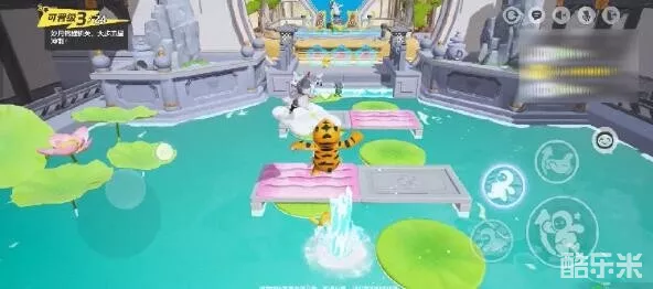 站在浮萍上前进的时候还会遇到石台的阻拦,石台上有左右移动的蹦床,星宝们要注意控制身形,不要被蹦床给弹到水里了!毕竟胜利就在眼前,要是不小心失误就太可惜了!