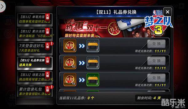 双11活动提前开幕,今年让《美职篮梦之队3》陪你狂欢购物节!