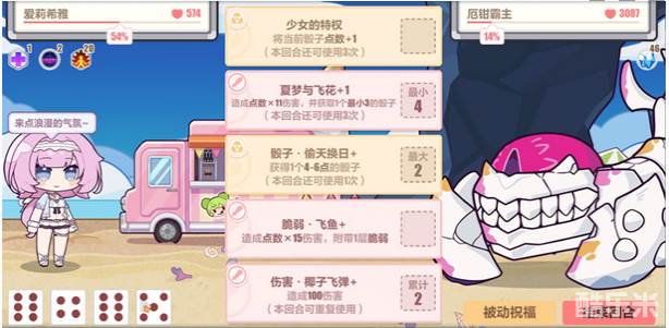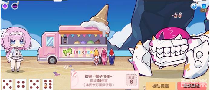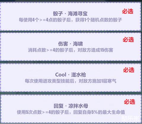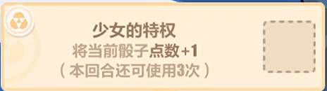 4)【少女的特权】的加1效果尽量用点数为4或5的骰子放,这样可以触发被动【海滩寻宝】叠次数。