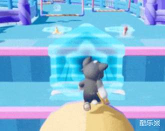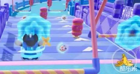 这个地图当中主跑道是以浅蓝色为主要色调的,其中设置的障碍物都是黄色和紫色相间的,色彩是比较清新的,在主色调当中又相对属于比较显眼的,设计也是十分独到了,这个地图分为了上下两个不同的赛道,赛道不同障碍物也不同。