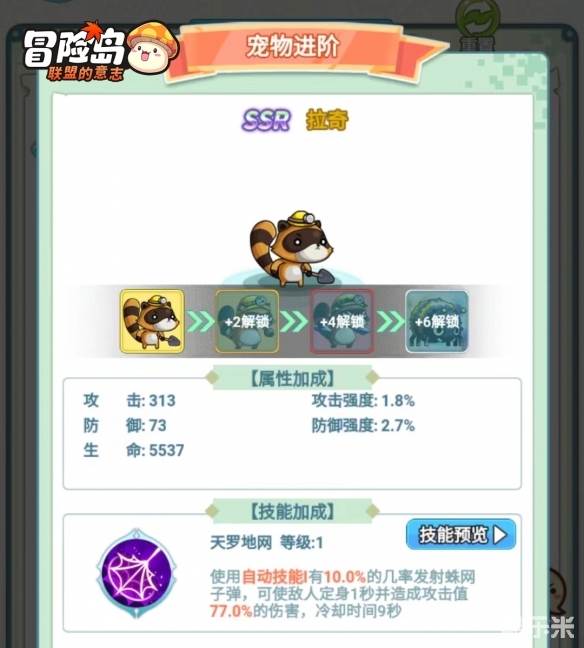 当然,宠物能给冒险家带来帮助可不仅仅局限于技能的加持,宠物所提供的各种加成,也是冒险家能在岛上称霸的关键!