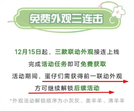 美羊羊的获取方式很简单,大家只需要做完小灰灰的人物之后就可以解锁美羊羊皮肤了,目前官方公布的规则称三款联动皮肤是免费获取的,但是需要获得前一联动皮肤才能解锁后续的皮肤,皮肤解锁的顺序是小灰灰,美羊羊,沸羊羊。