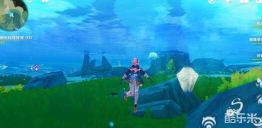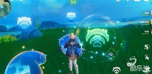 2、然后靠近两个海豚会有提示,接着我们到达附近石头位置并发出音波。