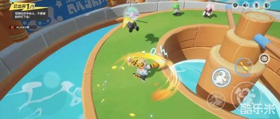 5、”利用“尖叫鸡”搞搞事、送温暖;投递“炸药包”助攻玩家快速入水游泳;利用加速操作将他人挤到平台或转杆边缘,打乱他人节奏。