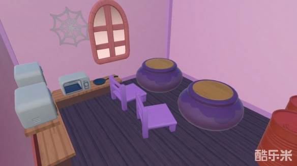 灰扑扑的窗户挂着蜘蛛网,角落的大缸落满灰尘,还没开封的油桶堆积一旁,反而是快捷的微波炉与平底锅成为使用率最高的厨具。食物香气犹存,满满当当的厨房成为蛋仔们藏身的好地方。