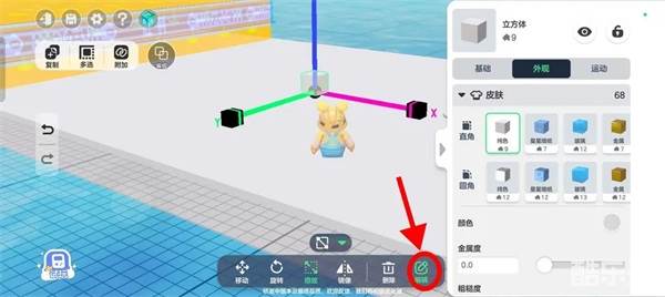 1、先新建地图,接着就是放置【积木】,之后就是点击右下角的编辑,就能够选择右侧的样式。