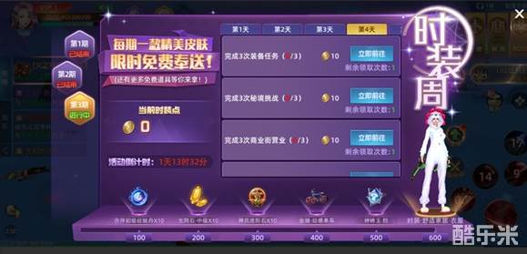 3、游戏中可以通过时装周玩法来获取限定时装和载具皮肤哦(时装周玩法=开服七天的活动任务)。