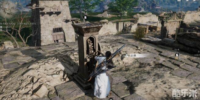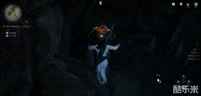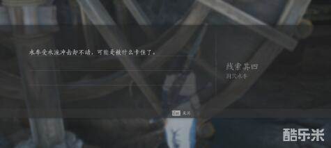 21、石缝处有个宝箱,下面有个水车, 调查后得到线索四。