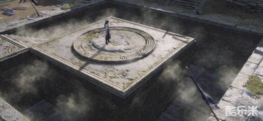 11、返回校场处,走到圆台上,按[Q]千斤坠触发机关